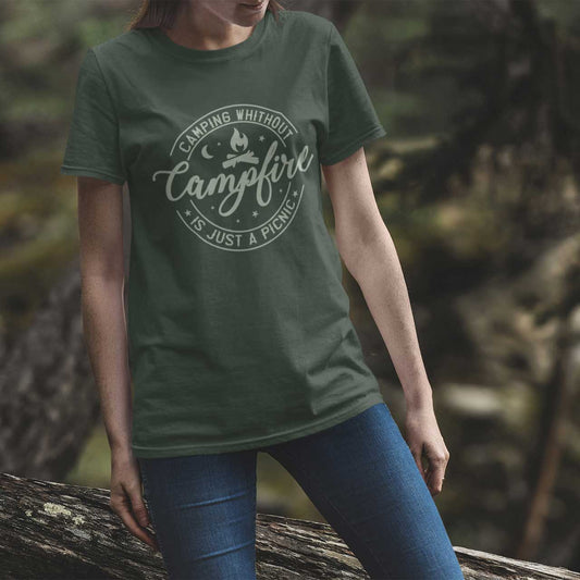 Unisex "Camping Without Campfire is just a Picnic" T-shirt Heather Forest