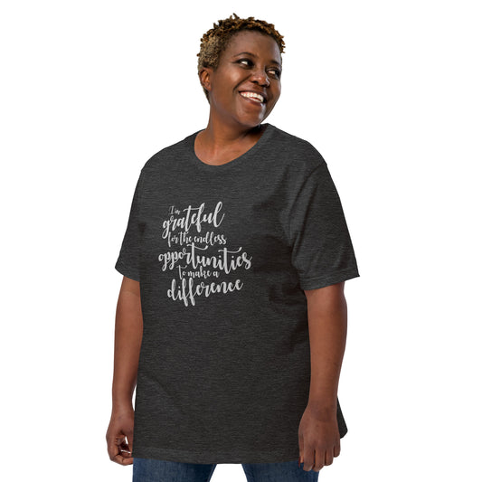 Grateful Affirmation T-shirt "I'm grateful for the endless opportunities to make a difference" Unisex Black Heather